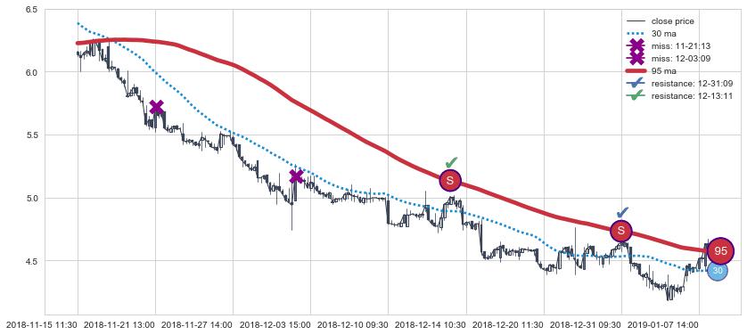 下跌趋势04-12 10:30-05-15 14:00,均线30, 95确认关键阻力4处
