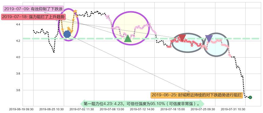 ♘ 阻力价格位4.23,可信任强度95.10%,距离最后交易2019-07-31 15:00形成的收盘价格3.510相差 +20.46%