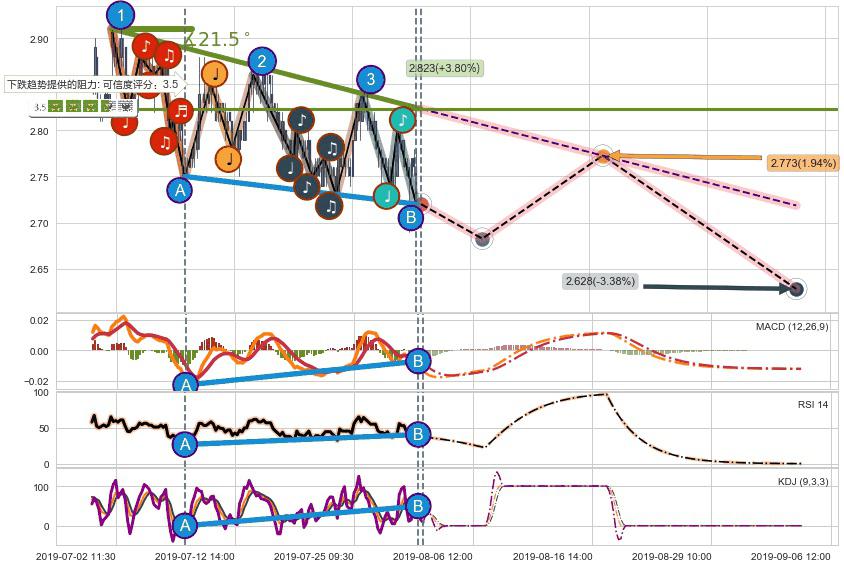➣ 预测:2019-08-19 14:00,【小幅反弹】稳定目前下跌趋势的前提下,预测价格:2.773