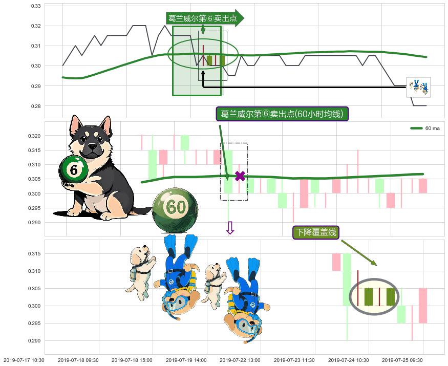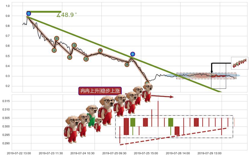 ➢ 最后的下跌趋势2019-05-28 15:00至2019-07-09 09:30:存在突破迹象,后续小反弹或者反转上涨