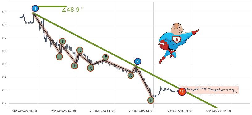 ⚔️ 2019-05-28 15:00-2019-07-09 09:30下跌趋势存在反转上涨[机会],其原下跌趋势的阻力位(0.0800000)已被突破[强支撑信号],原下跌趋势角度: 48.9˚