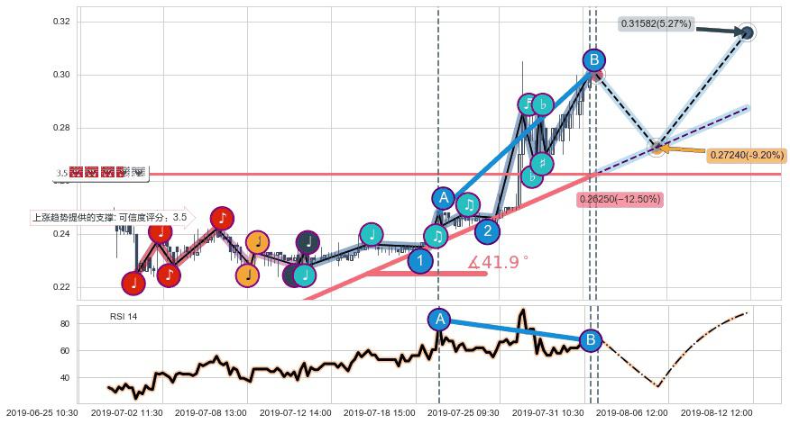 ➣ 预测:2019-08-12 12:00,【继续上扬】稳定目前上涨趋势的前提下,预测价格:0.31582