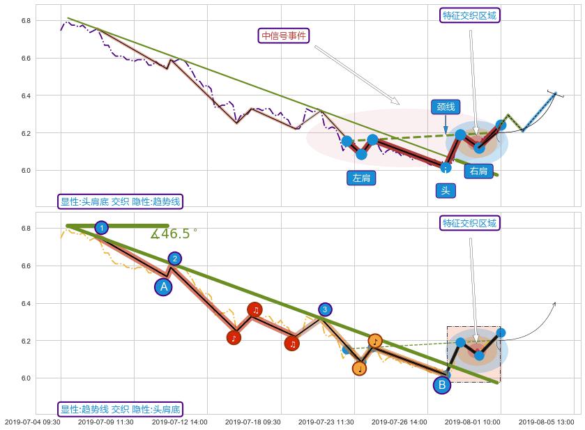 ➢ 最后的下跌趋势2019-07-04 11:30至2019-07-30 09:30:存在突破迹象,后续小反弹或者反转上涨