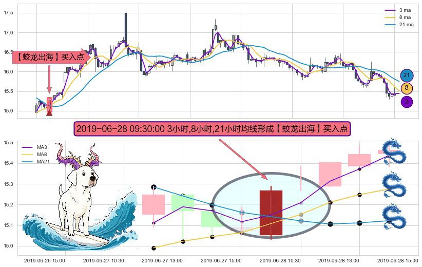 ⚀ 2019-06-28 09:30:00小时显现 3小时-8小时-21小时均线 【蛟龙出海】买入点 看多信号,后市看涨,买入