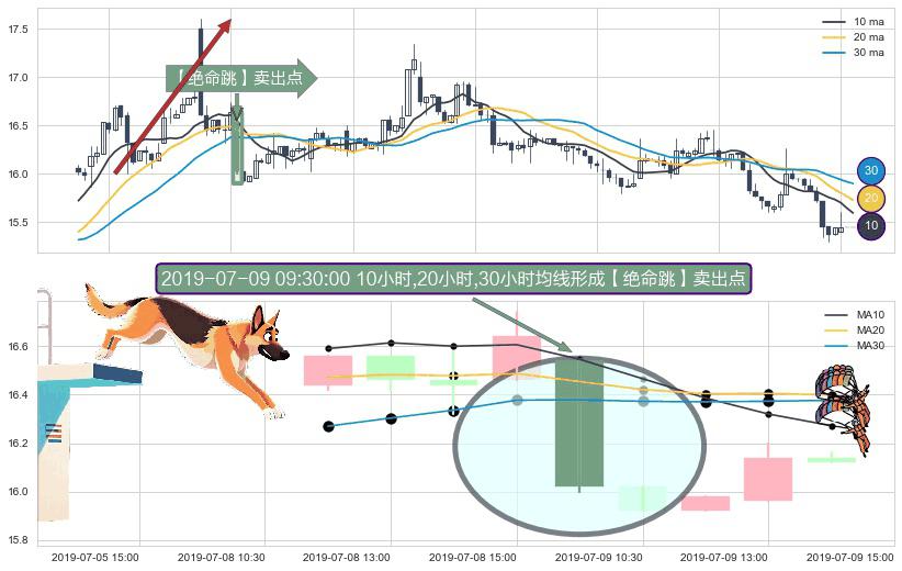 ⚀ 2019-07-09 09:30:00小时显现 10小时-20小时-30小时均线 【绝命跳】卖出点 看空信号,后市看跌,卖出