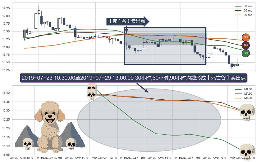 ⚀ 2019-07-23 11:30:00-小时至2019-07-29 13:00:00-小时显现 30小时-60小时-90小时均线 【死亡谷】卖出点 看空信号,后市看跌,卖出