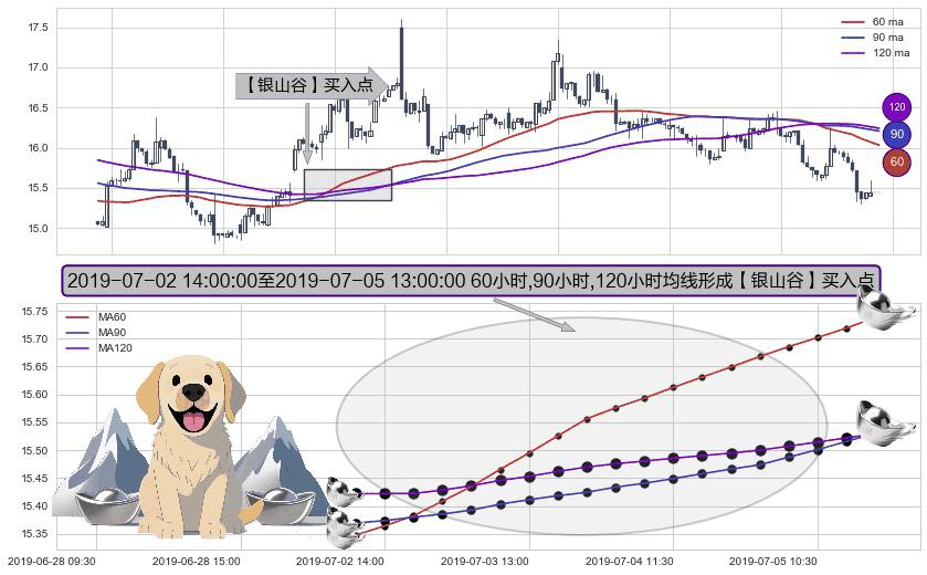 ⚀ 2019-07-02 15:00:00-小时至2019-07-05 13:00:00-小时显现 60小时-90小时-120小时均线 【银山谷】买入点 看多信号,后市看涨,买入