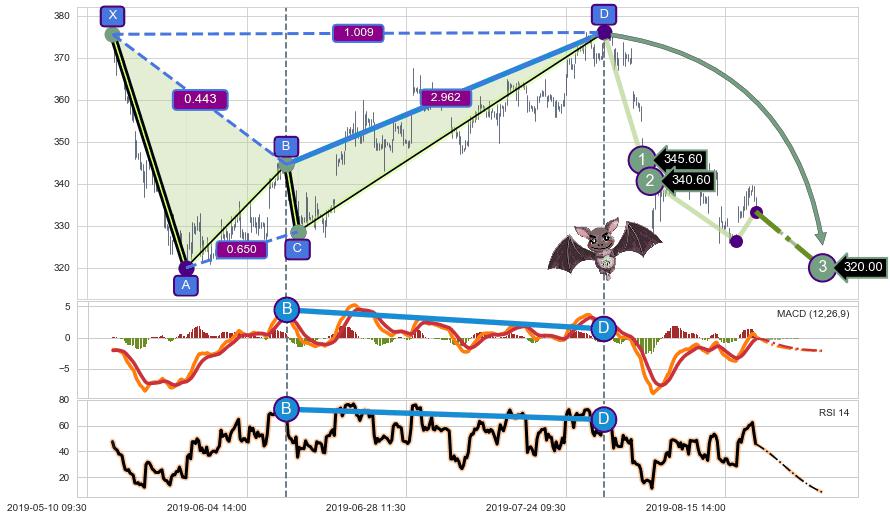 ➣ 已完成【蝙蝠】形态起点X: 05-15:14, 终点D: 07-30:09, 共309交易小时