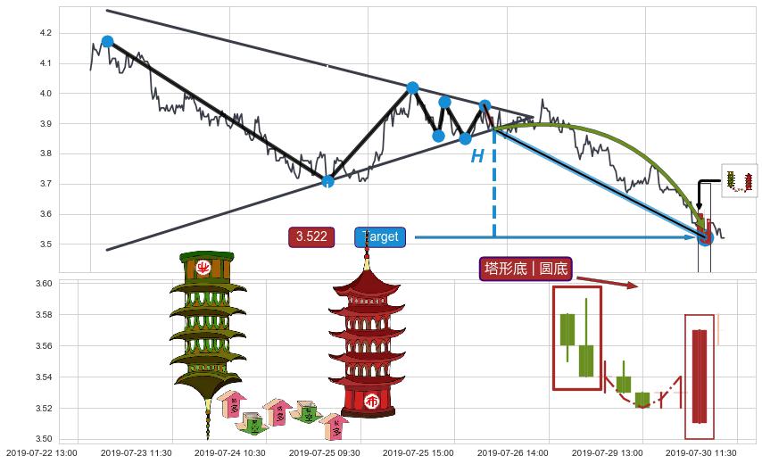 2019-07-02: 第一阻力位3.983强力阻拦了上升趋势,成功阻止了价格的继续上涨。
