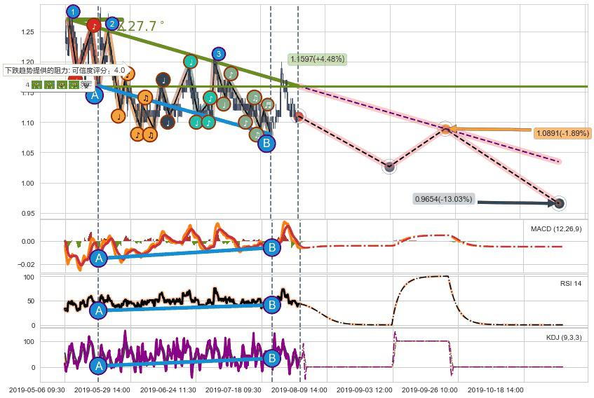 ➢ 预测:2019-11-01 14:00,【继续下探】稳定目前下跌趋势的前提下,预测价格:0.9654