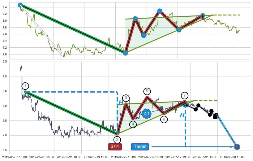 ➣ 【已确认突破】最后价格:7.70与最小【整理】第一目标价格→(08-08:15: 6.61 )相较: 下跌空间【较大】