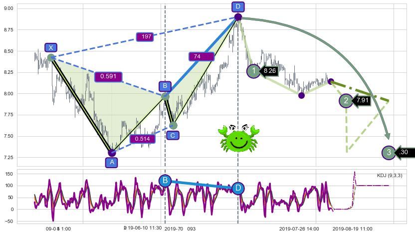 ➣ 已完成【螃蟹】形态起点X: 05-03:15, 终点D: 07-04:09, 共242交易小时