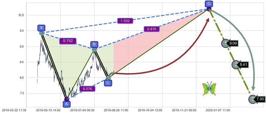 ➣ 未完成【蝴蝶】形态起点X: 03-11:09, 已到达C点: 07-04:09, 预测最终D点: 01-08:10, 共1224交易小时
