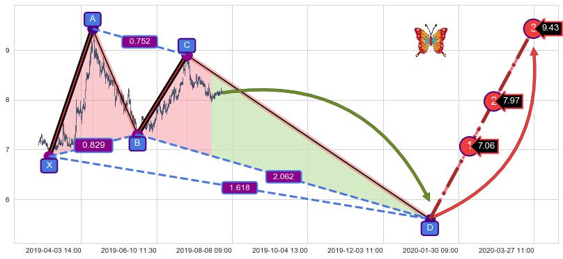 ➣ 未完成【蝴蝶】形态起点X: 04-15:09, 已到达C点: 07-23:13, 预测最终D点: 12-09:12, 共982交易小时
