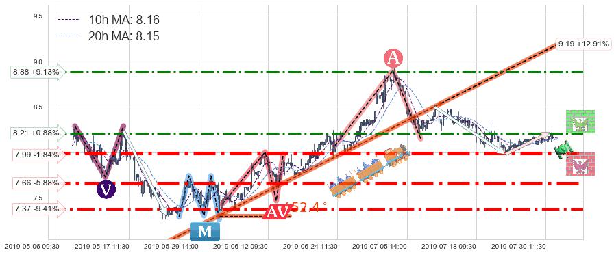 ♘ 支撑价格位7.99,可信任强度90.20%,距离最后交易2019-07-31 15:00形成的收盘价格8.14相差 -1.84%