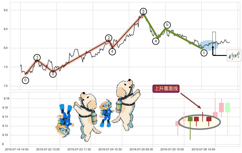 从2019-07-23 13:00至2019-07-31 15:00,共包含39个小时,阶段股价上涨2.01%,阶段股价变动位移路程比: 1 : 5