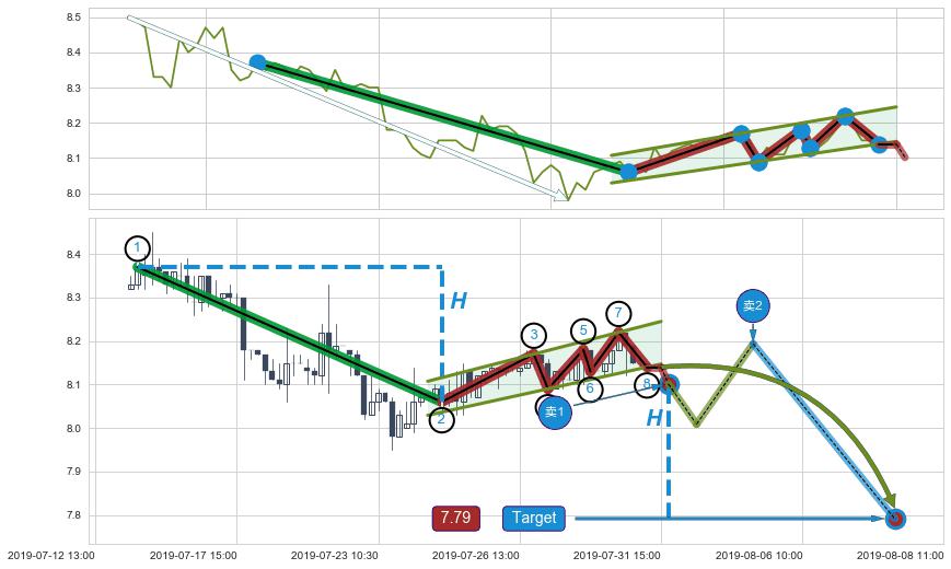 ➢ 【仅预测突破】最后价格:8.14与预测突破价格:8.10→【空间临近】后续最小【整理】第一目标价格→(08-08:11: 7.79 )