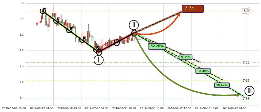 ♘ 支撑价格位7.96,可信任强度94.35%,距离最后交易2019-07-31 15:00形成的收盘价格8.14相差 -2.27%