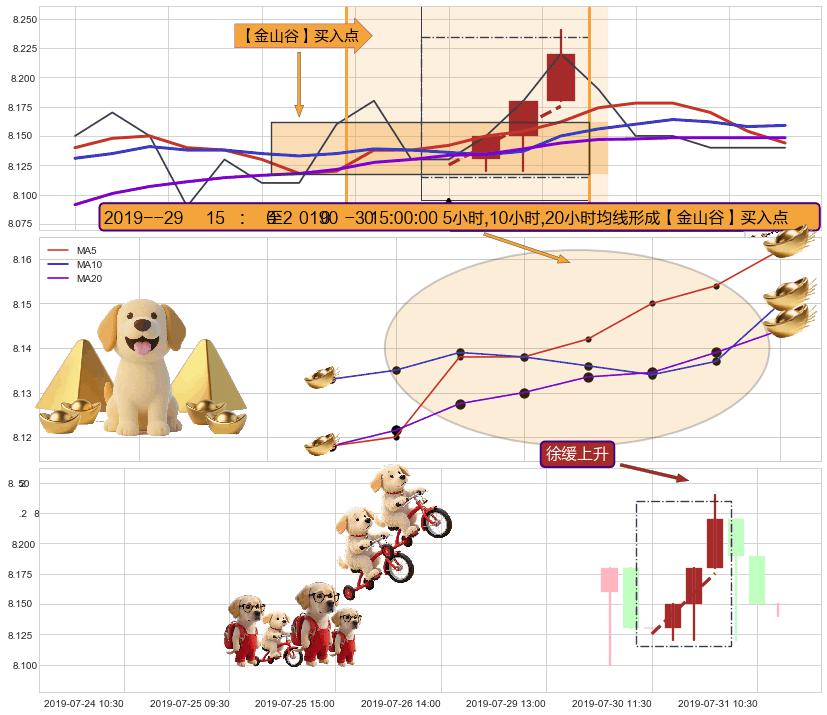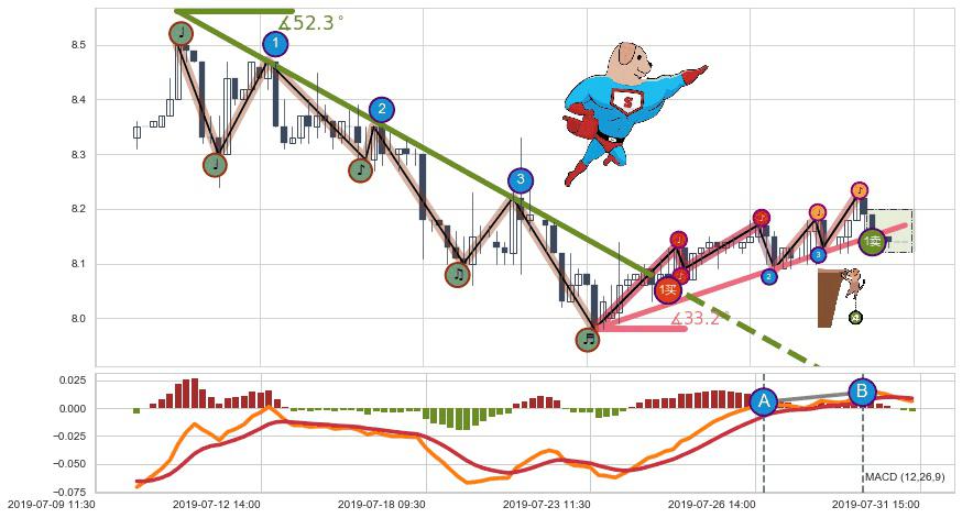 从2019-07-23 13:00至2019-07-31 14:00,共包含38个小时,阶段股价上涨2.01%,阶段股价变动位移路程比: 1 : 5,上涨趋势角度: 33.2