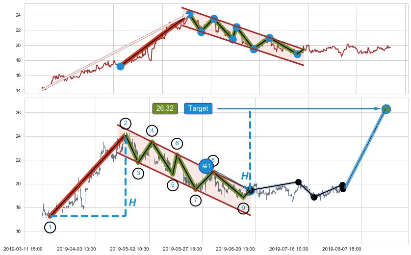 ➣ 最小中继整理涨幅→𝐇: 6.87 (𝐇旗杆的长度:旗杆起点→顶点)