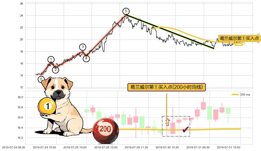 从2019-06-20 10:30至2019-07-08 15:00,共包含71个小时,阶段股价下跌-5.03%,阶段股价变动位移路程比: 1 : 7