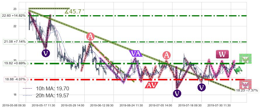 ➣ 【仅预测突破】最后价格:19.68与预测突破价格:19.45→【空间临近】后续最小【整理】第一目标价格→(08-08:12: 17.34 )