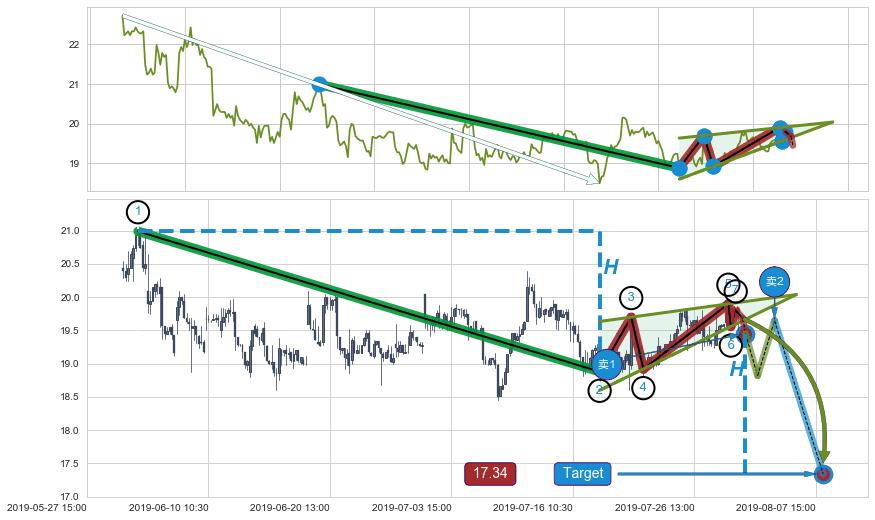 ➣ AI预测: 假定反转启动后, 第❶目标位置(08-23:14, 19.80)