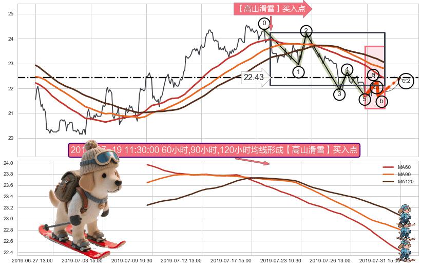从2019-07-03 10:30至2019-07-30 14:00,共包含118个小时,阶段股价下跌-9.67%,阶段股价变动位移路程比: 1 : 6,下跌趋势角度: 56.7