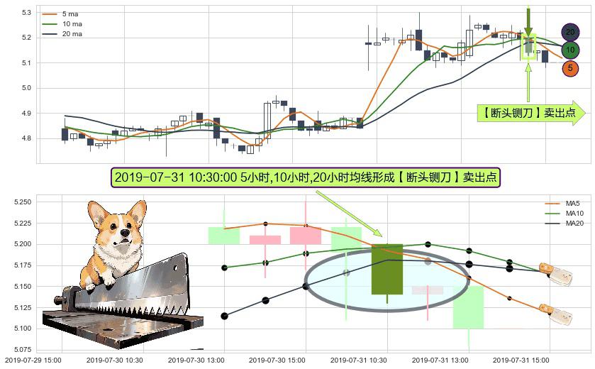 形态多维评估: ⚀ 2019-07-31 10:30:00小时显现 5小时-10小时-20小时均线 【断头铡刀】卖出点 看空信号,后市看跌,卖出
