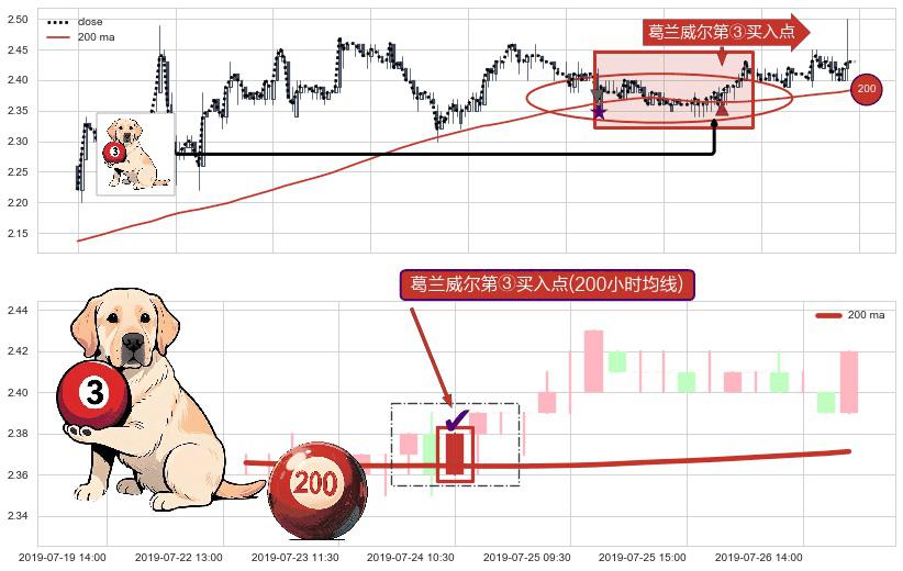 ⚀ 2019-07-24 10:30:00-小时显现 葛兰威尔均线 200小时均线 第③买入点 上升趋势的中继信号,后市看涨,买进信号