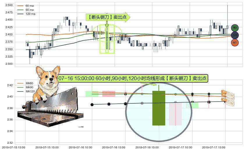 ⚀ 2019-07-16 15:00:00小时显现 60小时-90小时-120小时均线 【断头铡刀】卖出点 看空信号,后市看跌,卖出