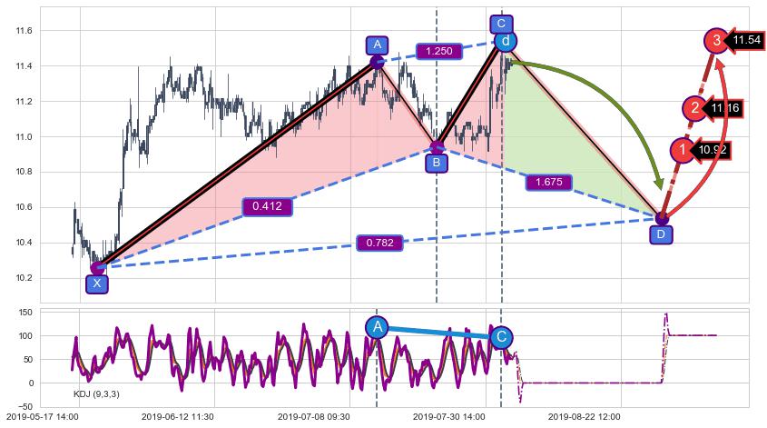 ➣ 未完成【蝴蝶】形态起点X: 04-01:14, 已到达C点: 07-22:14, 预测最终D点: 08-22:11, 共567交易小时