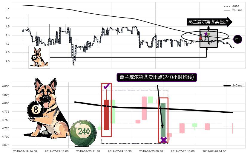 ⚁ 240小时均线 第⑧卖出点 属于 均线服从 信号,属于趋势运行的【常态】即信号期望为下降趋势的中继