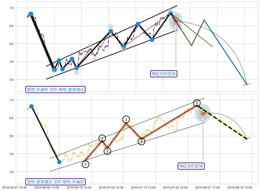 从2019-07-22 13:00至2019-07-31 15:00,共包含45个小时,阶段股价上涨8.35%,阶段股价变动位移路程比: 1 : 2