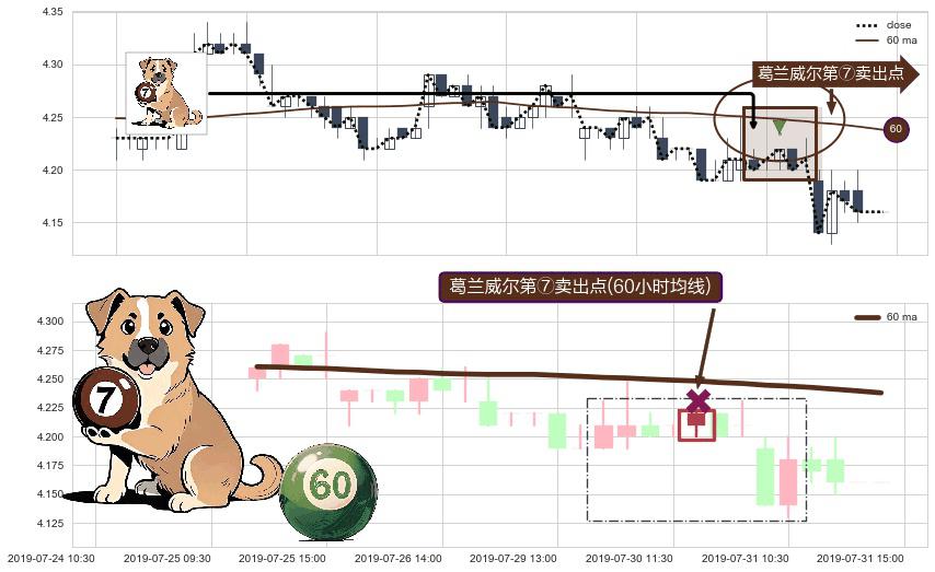形态多维评估: ⚀ 2019-07-30 13:00:00-小时显现 葛兰威尔均线 60小时均线 第⑦卖出点 下降趋势的中继信号,后市看跌,卖出信号