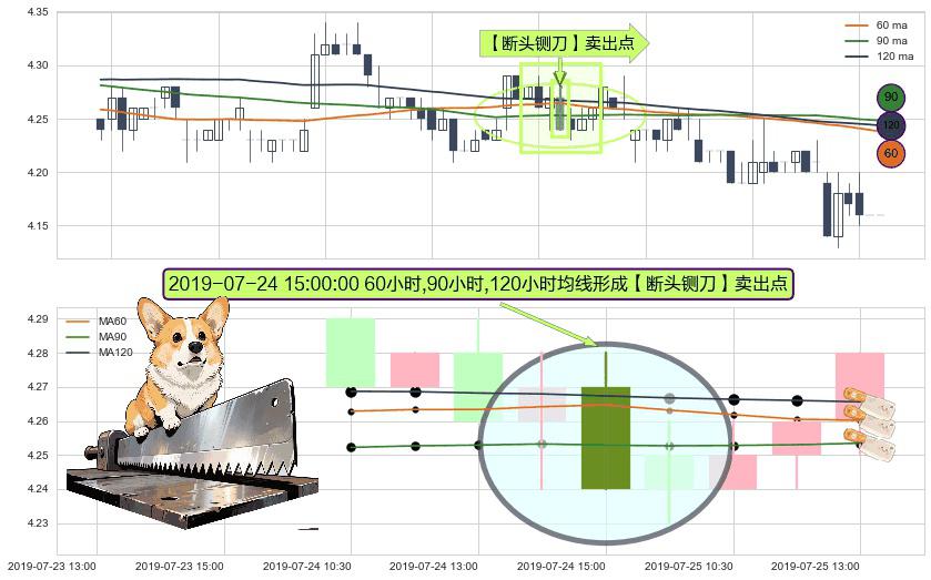 形态多维评估: ⚀ 2019-07-24 15:00:00小时显现 60小时-90小时-120小时均线 【断头铡刀】卖出点 看空信号,后市看跌,卖出