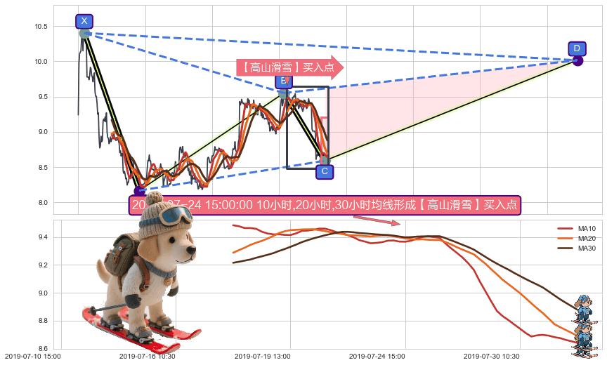 从2019-07-17 09:30至2019-07-31 15:00,共包含66个小时,阶段股价下跌-10.24%,阶段股价变动位移路程比: 1 : 2