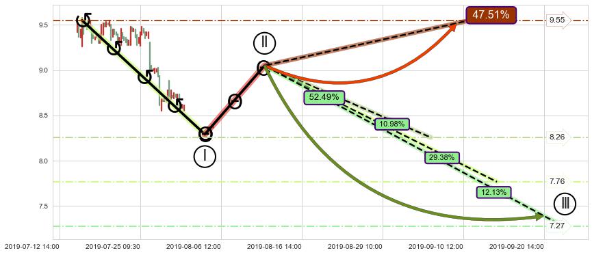 ➣ 5.1: 预测当前第5浪位置(07-31:10, 8.59),仍然有下跌空间