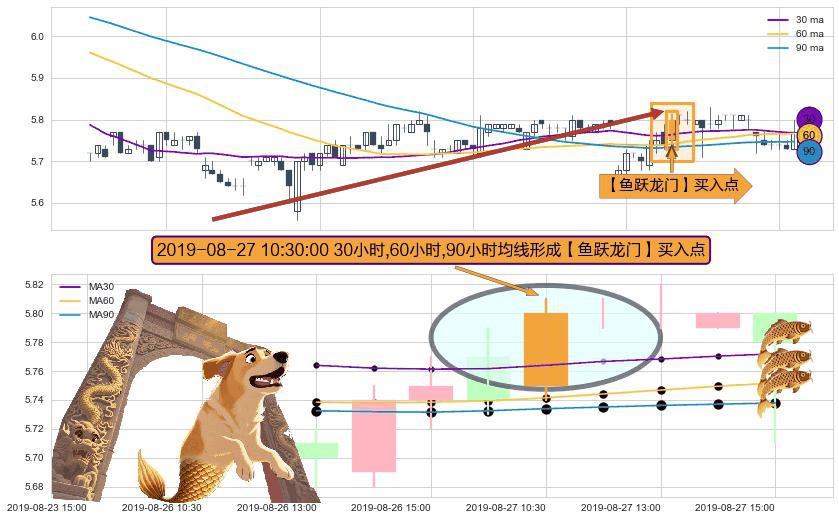 ⚀ 2019-08-27 10:30:00小时显现 30小时-60小时-90小时均线 【鱼跃龙门】买入点 看多信号,后市看涨,买入
