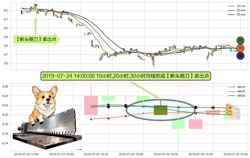 ⚀ 2019-07-24 14:00:00小时显现 10小时-20小时-30小时均线 【断头铡刀】卖出点 看空信号,后市看跌,卖出