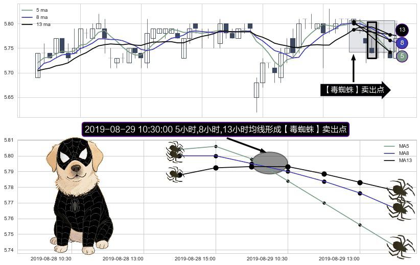 ⚀ 2019-08-29 10:30:00小时显现 5小时-8小时-13小时均线 【毒蜘蛛】卖出点 看空信号,后市看跌,卖出