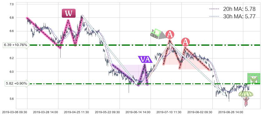 ♘ 阻力价格位6.39,可信任强度77.78%,距离最后交易2019-08-29 15:00形成的收盘价格5.77相差 +10.76%