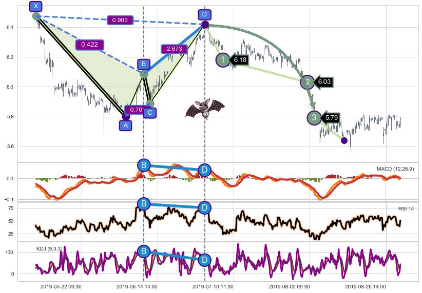 ➣ 已完成【蝙蝠】形态起点X: 05-07:09, 终点D: 07-02:09, 共223交易小时