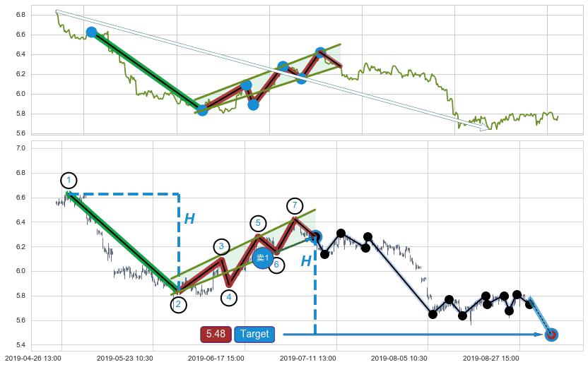 ➣ 最小中继整理跌幅→𝐇: 0.7970 (𝐇旗杆的长度:旗杆起点→顶点)