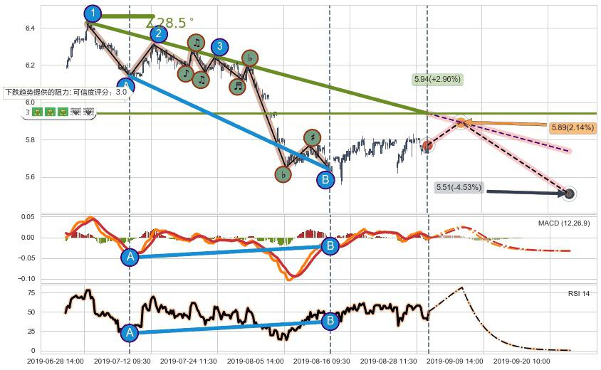 ➣ 预测:2019-09-24 14:00,【继续下探】稳定目前下跌趋势的前提下,预测价格:5.51