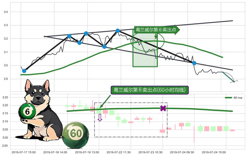 | 11 🅚:葛兰威尔第⑥卖出点 ➕ 📈:趋势线上涨趋势原支撑已出现破位,猜想原支撑已变为阻力位(大周期均值回复) ☞ 看空信号 ⇥ 【均线】交织【图形】⇥ 综合量化分数: 46 | > |