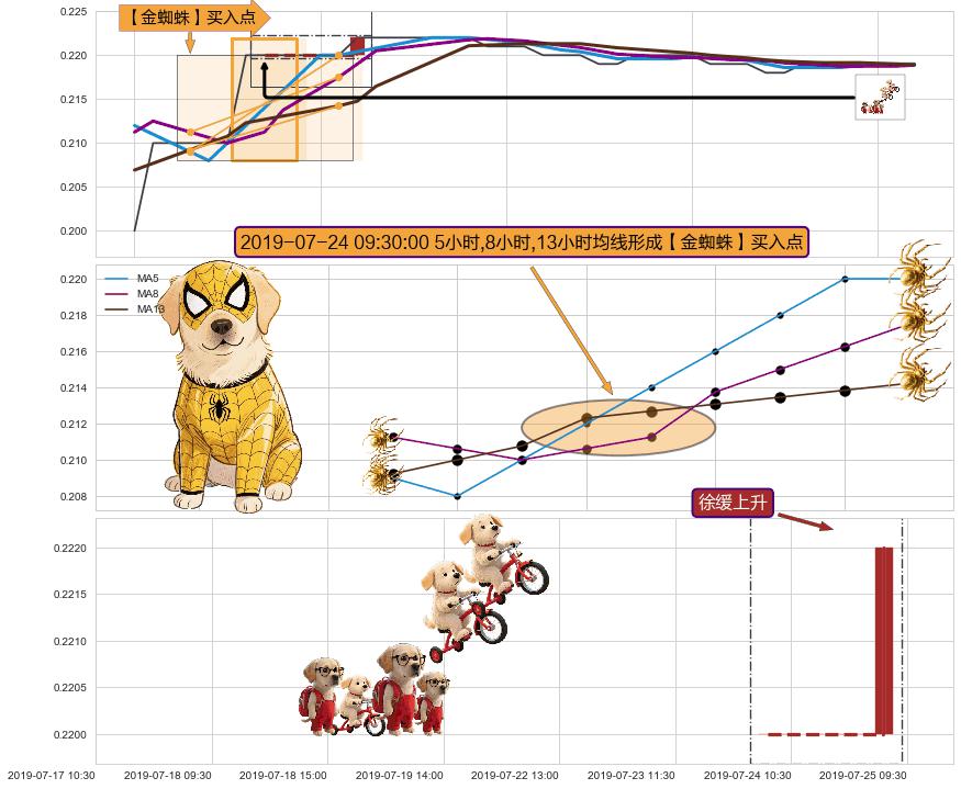 | 2 🅚:【金蜘蛛】买入点 ➕ 🌊:波浪理论下跌5浪延续反弹:猜想回调C点击穿突破,猜想持续蓄力反弹abc上涨方向(大周期趋势均值回复后小周期持续趋势跟踪) ☞ 看多信号 ⇥ 【均线】交织【图形】⇥ 综合量化分数: 61 | > |