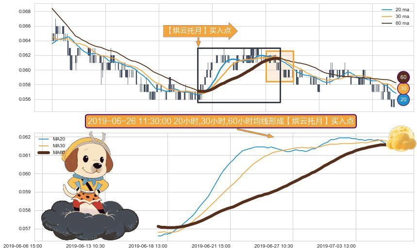 ⚀ 2019-06-18 09:30:00小时-2019-07-05 14:00:00小时显现 20小时-30小时-60小时均线 【烘云托月】买入点 看多信号,后市看涨,买入