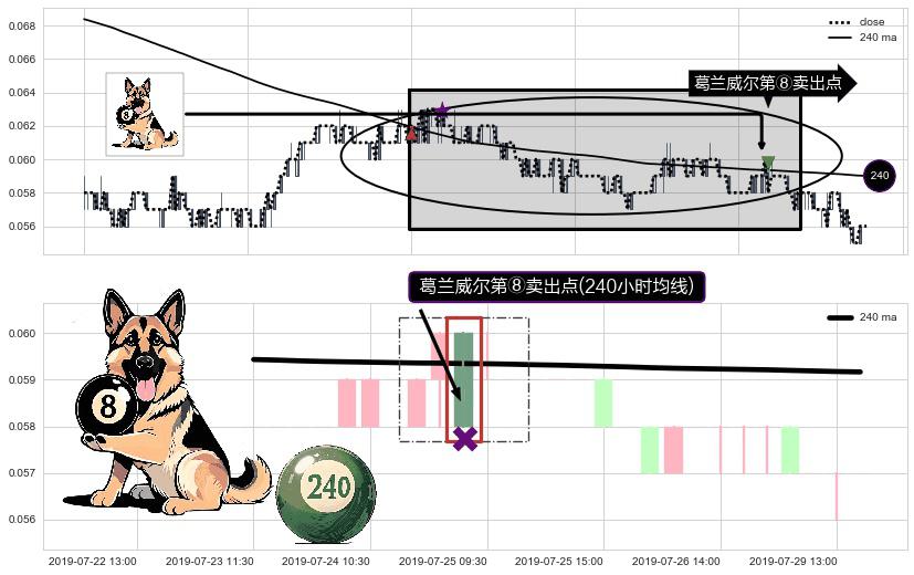 ⚀ 2019-07-24 15:00:00-小时显现 葛兰威尔均线 240小时均线 第⑧卖出点 下降趋势的中继信号,后市看跌,卖出信号