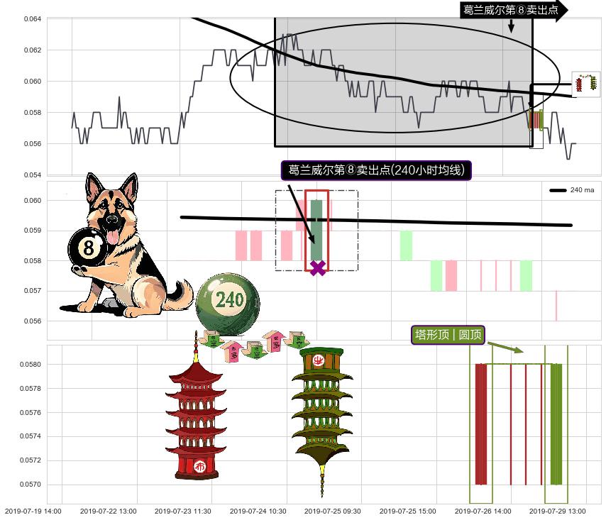 🦴 长线均值回复组合短线趋势跟踪[强阻力信号]2019-02-26 15:00-2019-07-31 15:00下跌趋势依然成立(下跌趋势跟踪依然存在),短线价格略微上行反弹(均值回复猜想),即将接近下跌趋势提供的未破位阻力价格:0.0576951。